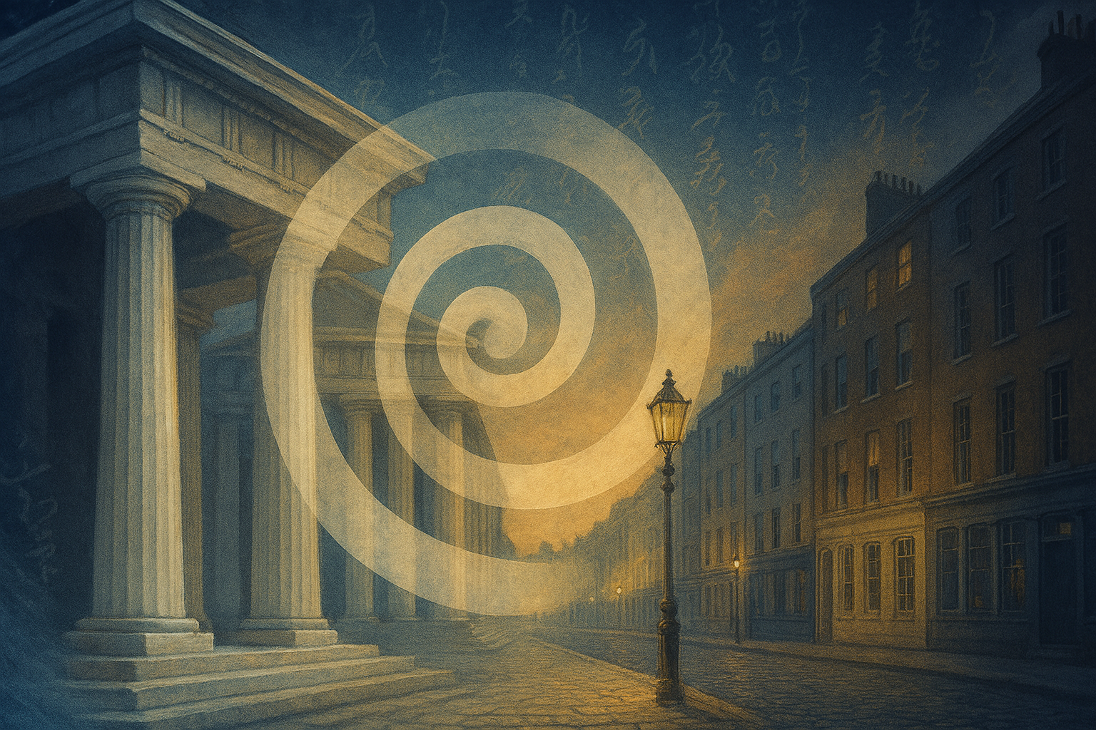 しかし、『ユリシーズ』においても、ヴィーコの影響は見られる。例えば、第2章「ネストル」において、スティーヴンが「歴史は私が逃れようとする悪夢である」と述べる場面は、ヴィーコの歴史循環論を反映している。また、第14章「オクシーの牛」において、英語の文体が古英語から現代英語へと変遷する場面は、ヴィーコの三つの時代の循環を言語の変遷として表現している。